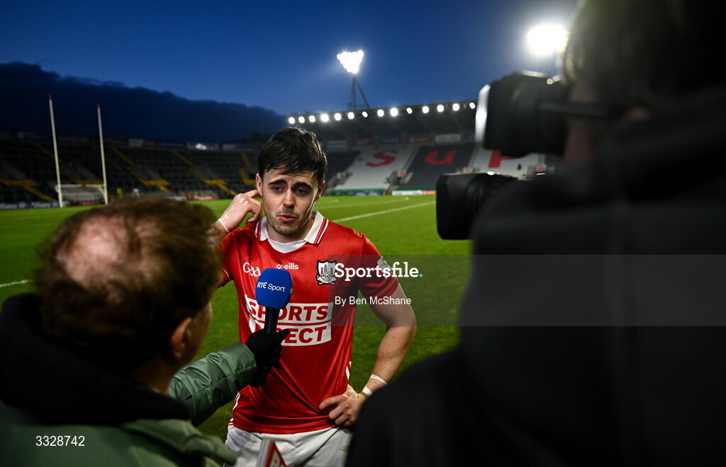 25 January 2026; Darragh Fitzgibbon of Cork is interviewed by RTÉ's Marty Morrissey after his side's victory in the Allianz Hurling League Division 1A match between Cork and Waterford at SuperValu Páirc Uí Chaoimh in Cork. Photo by Ben McShane/Sportsfile