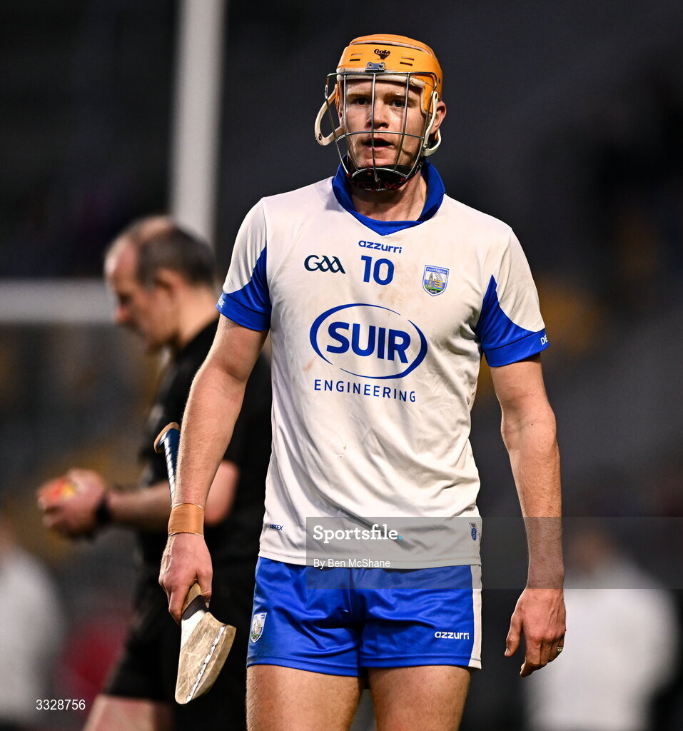 25 January 2026; Sean Walsh of Waterford leaves the pitch after being sent off after a tussle with Eoin Roche of Cork, not pictured, during the Allianz Hurling League Division 1A match between Cork and Waterford at SuperValu Páirc Uí Chaoimh in Cork. Photo by Ben McShane/Sportsfile
