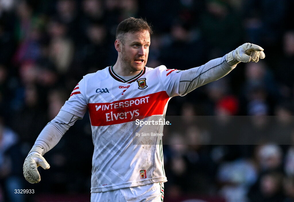 25 January 2026; Mayo goalkeeper Robbie Hennelly during the Allianz Football League Division 1 match between Galway and Mayo at Pearse Stadium in Galway. Photo by Sam Barnes/Sportsfile