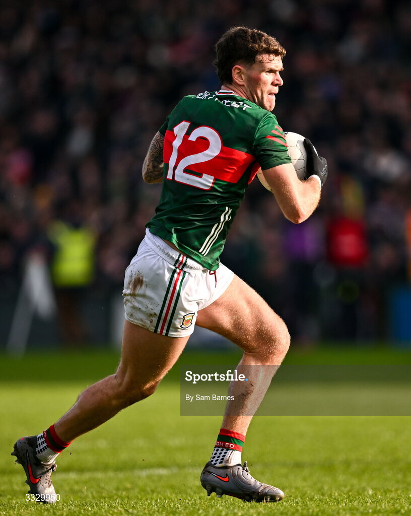 25 January 2026; Jordan Flynn of Mayo during the Allianz Football League Division 1 match between Galway and Mayo at Pearse Stadium in Galway. Photo by Sam Barnes/Sportsfile