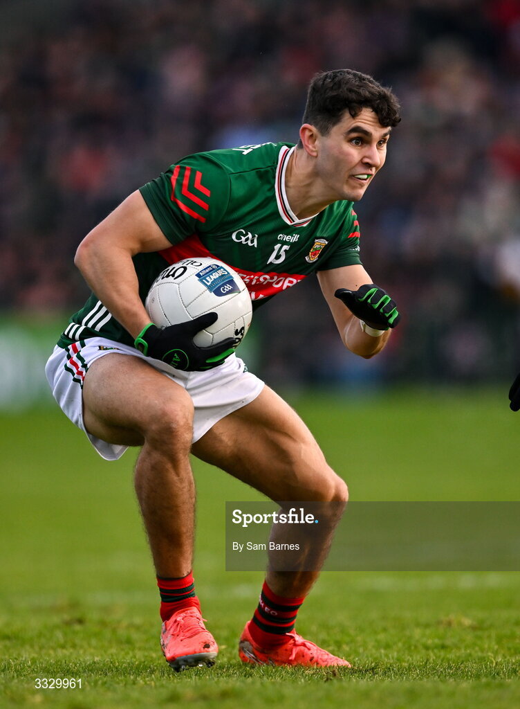 25 January 2026; Tommy Conroy of Mayo during the Allianz Football League Division 1 match between Galway and Mayo at Pearse Stadium in Galway. Photo by Sam Barnes/Sportsfile