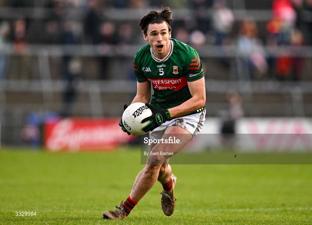 25 January 2026; Sam Callinan of Mayo during the Allianz Football League Division 1 match between Galway and Mayo at Pearse Stadium in Galway. Photo by Sam Barnes/Sportsfile