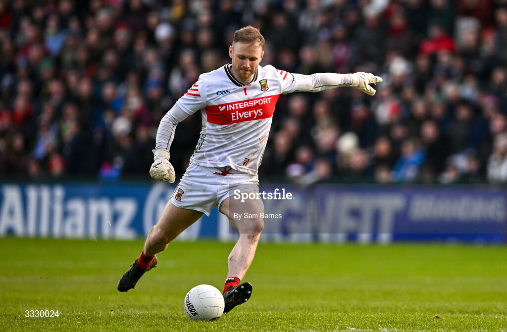 25 January 2026; Mayo goalkeeper Robbie Hennelly during the Allianz Football League Division 1 match between Galway and Mayo at Pearse Stadium in Galway. Photo by Sam Barnes/Sportsfile