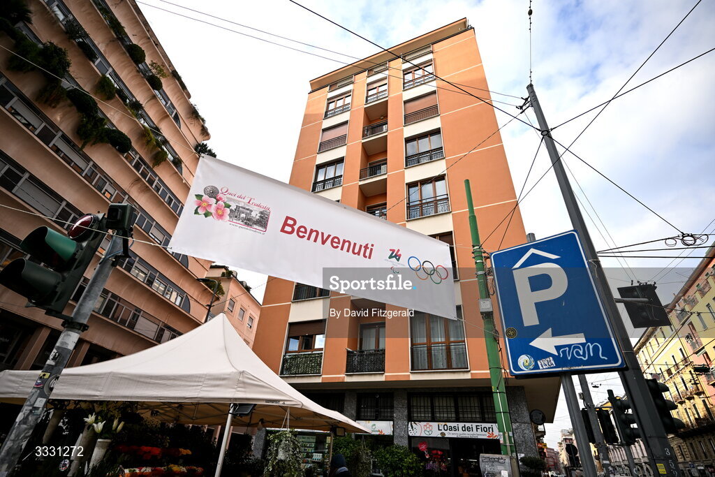 27 January 2026; Signage is seen in Porta Romana ahead ahead of the Milano Cortina 2026 Winter Olympics in Milan, Italy. Photo by David Fitzgerald/Sportsfile