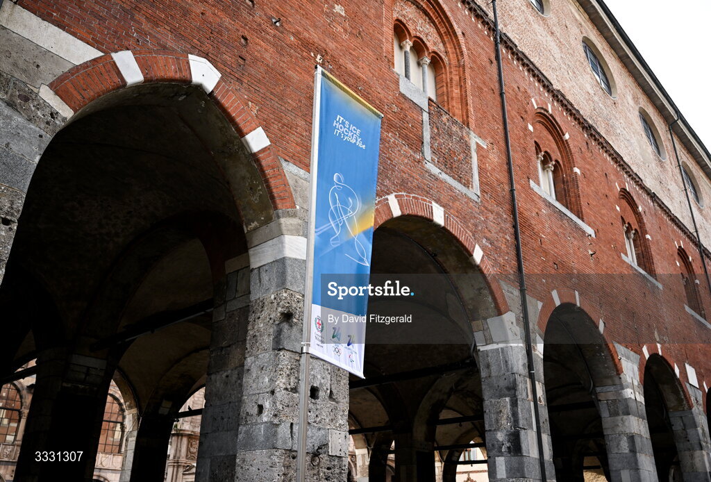 27 January 2026; Signage is seen near Piazza Duomo ahead of the Milano Cortina 2026 Winter Olympics in Milan, Italy. Photo by David Fitzgerald/Sportsfile