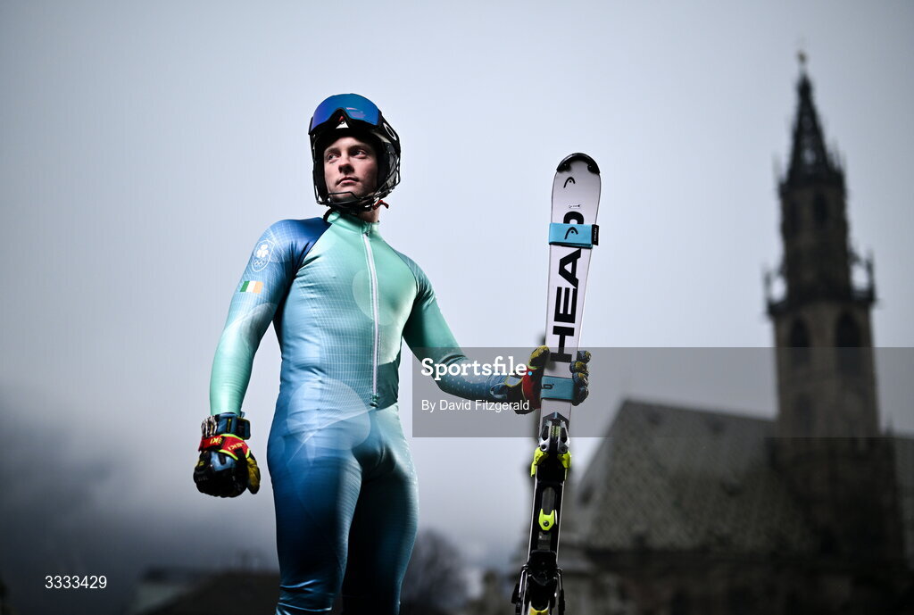 28 January 2026; Team Ireland alpine skiier Cormac Comerford in Piazza Walther during the Milano Cortina 2026 content capture day ahead of the Winter Olympic Games in Bolzano, Italy. Photo by David Fitzgerald/Sportsfile