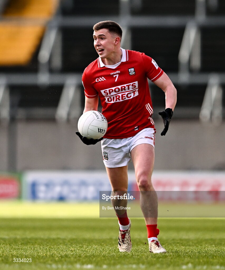 25 January 2026; Luke Fahy of Cork during the Allianz Football League Division 2 match between Cork and Cavan at SuperValu Páirc Uí Chaoimh in Cork. Photo by Ben McShane/Sportsfile
