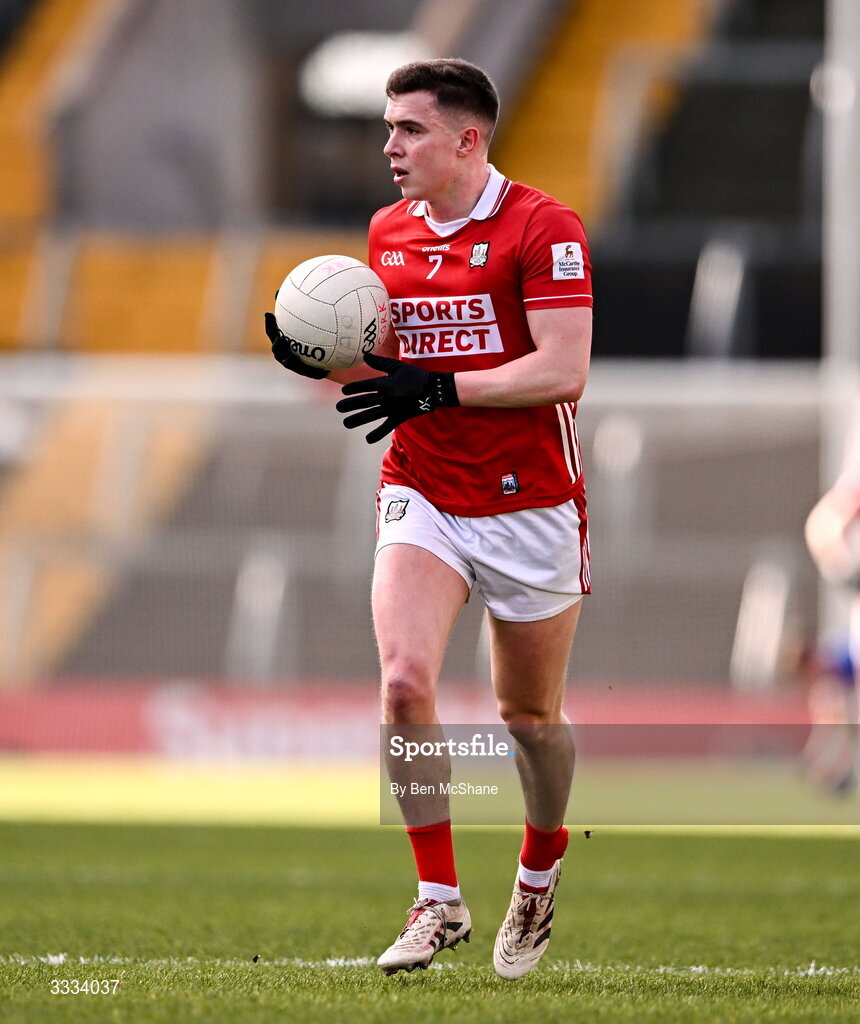 25 January 2026; Luke Fahy of Cork during the Allianz Football League Division 2 match between Cork and Cavan at SuperValu Páirc Uí Chaoimh in Cork. Photo by Ben McShane/Sportsfile