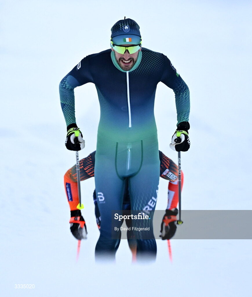 30 January 2026; Thomas Maloney Westgaard of Team Ireland, front, and Joel Davis of Team GB competing in a test race ahead of the Milano Cortina 2026 Winter Olympics in Seefeld, Austria. Photo by David Fitzgerald/Sportsfile