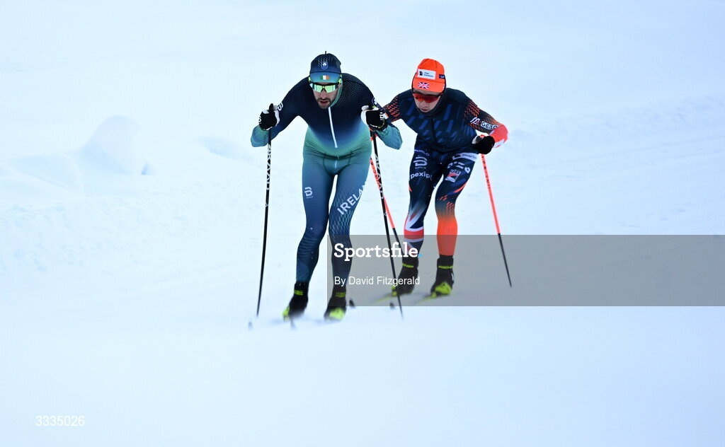 30 January 2026; Thomas Maloney Westgaard of Team Ireland, left, and Joel Davis of Team GB competing in a test race ahead of the Milano Cortina 2026 Winter Olympics in Seefeld, Austria. Photo by David Fitzgerald/Sportsfile