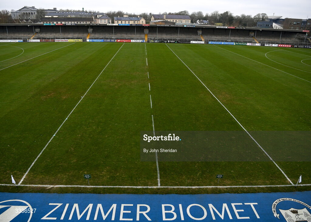 31 January 2026; A general view of the pitch before the Dr Harty Cup final match between St Flannans College and St Joseph's CBS at Zimmer Biomet Páirc Chíosóg in Ennis, Clare. Photo by John Sheridan/Sportsfile