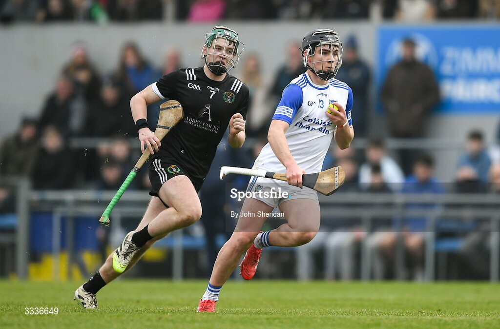 31 January 2026; Eoin O'Connor of St Flannan's College Ennis in action against Emmett Jones of Nenagh CBS during the Dr Harty Cup final match between St Flannans College and St Joseph's CBS at Zimmer Biomet Páirc Chíosóg in Ennis, Clare. Photo by John Sheridan/Sportsfile