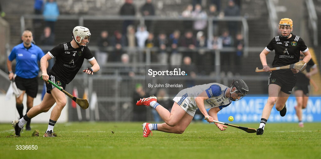 31 January 2026; Eoin O'Connor of St Flannan's College Ennis in action against Cormac Kennedy of Nenagh CBS during the Dr Harty Cup final match between St Flannans College and St Joseph's CBS at Zimmer Biomet Páirc Chíosóg in Ennis, Clare. Photo by John Sheridan/Sportsfile