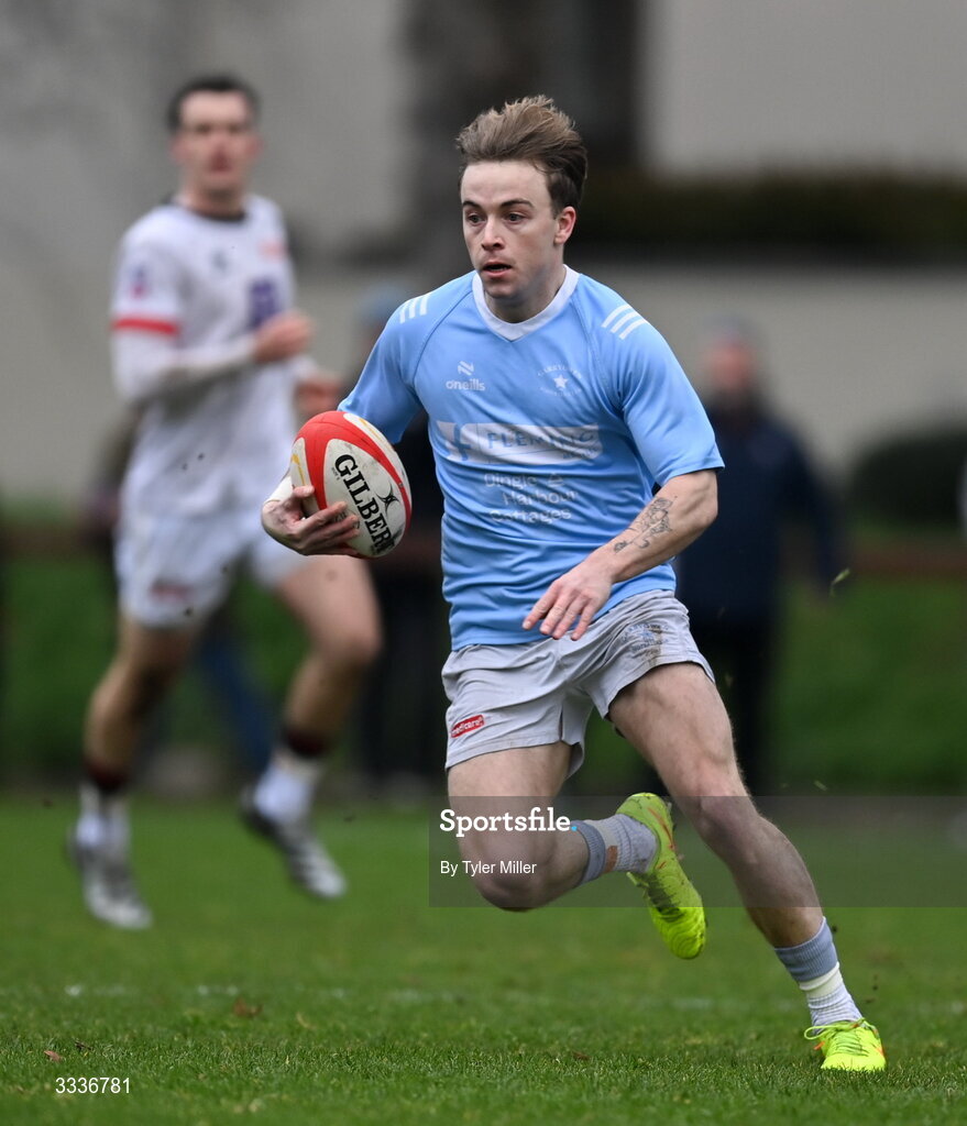 31 January 2026; Sean Sexton of Garryowen makes a break during the Energia All-Ireland League Men’s Division 1B match between Dublin University and Garryowen at College Park in Dublin. Photo by Tyler Miller/Sportsfile
