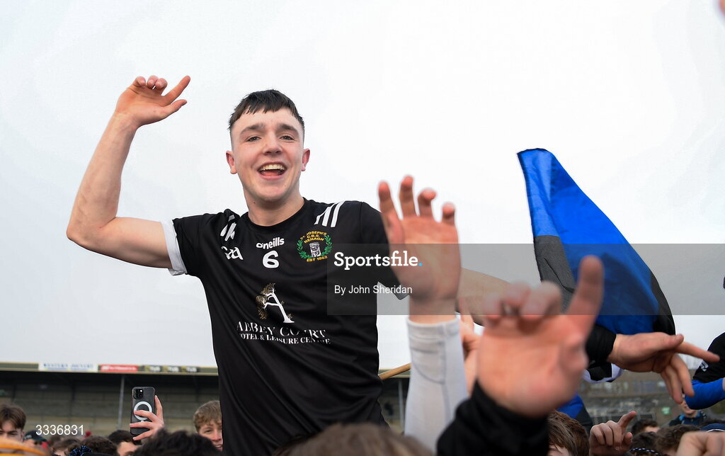 31 January 2026; Shane Cleary of Nenagh CBS celebrates after the Dr Harty Cup final match between St Flannans College and St Joseph's CBS at Zimmer Biomet Páirc Chíosóg in Ennis, Clare. Photo by John Sheridan/Sportsfile