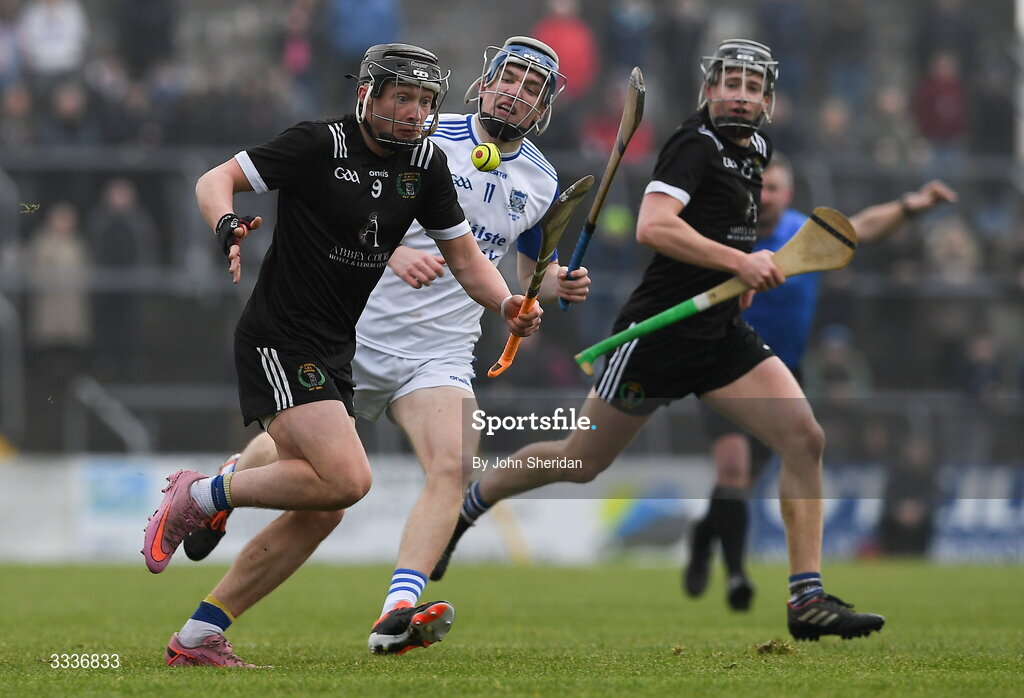 31 January 2026;Austin Duff of Nenagh CBS in action against Patrick Finneran of St Flannan's College Ennis during the Dr Harty Cup final match between St Flannans College and St Joseph's CBS at Zimmer Biomet Páirc Chíosóg in Ennis, Clare. Photo by John Sheridan/Sportsfile