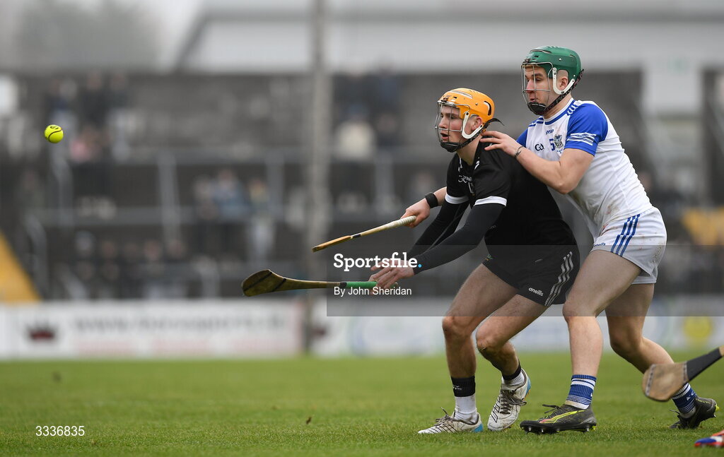 31 January 2026; Eoghan Doughan of Nenagh CBS in action against Darragh Ball of St Flannan's College Ennis during the Dr Harty Cup final match between St Flannans College and St Joseph's CBS at Zimmer Biomet Páirc Chíosóg in Ennis, Clare. Photo by John Sheridan/Sportsfile