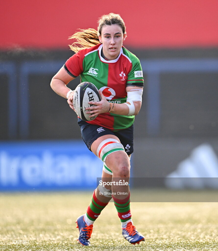 25 January 2026; Annakate Cournane of Clovers during the Celtic Challenge Round 5 match between Clovers and Brython Thunder at Virgin Media Park in Cork. Photo by Shauna Clinton/Sportsfile