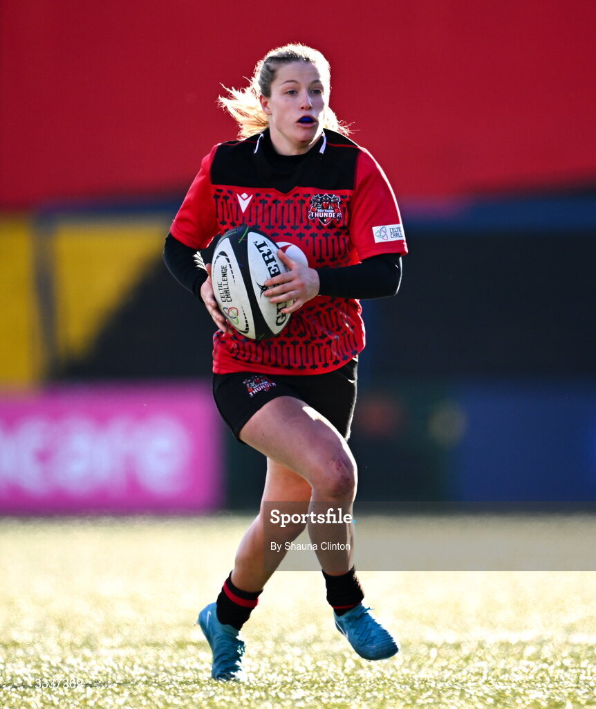 25 January 2026; Amy Williams of Brython Thunder during the Celtic Challenge Round 5 match between Clovers and Brython Thunder at Virgin Media Park in Cork. Photo by Shauna Clinton/Sportsfile