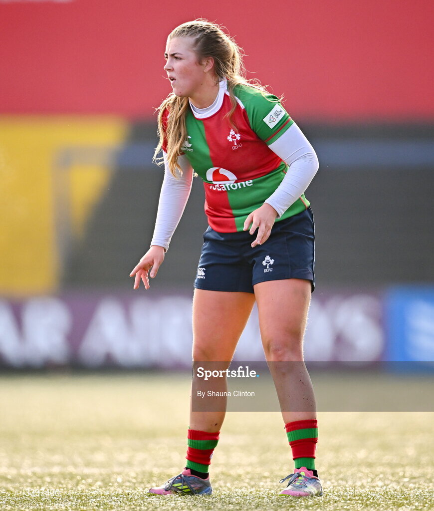 25 January 2026; Lyndsay Clarke of Clovers during the Celtic Challenge Round 5 match between Clovers and Brython Thunder at Virgin Media Park in Cork. Photo by Shauna Clinton/Sportsfile