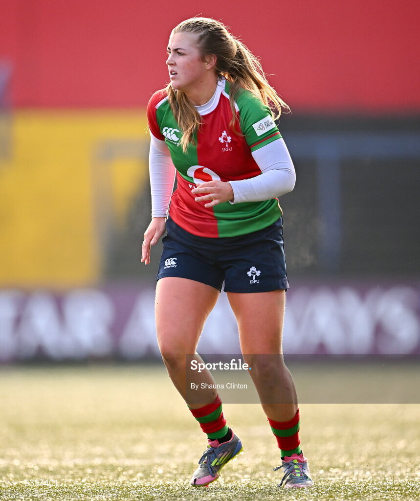 25 January 2026; Lyndsay Clarke of Clovers during the Celtic Challenge Round 5 match between Clovers and Brython Thunder at Virgin Media Park in Cork. Photo by Shauna Clinton/Sportsfile