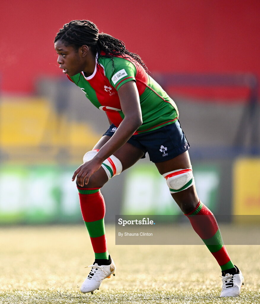 25 January 2026; Faith Oviawe of Clovers during the Celtic Challenge Round 5 match between Clovers and Brython Thunder at Virgin Media Park in Cork. Photo by Shauna Clinton/Sportsfile