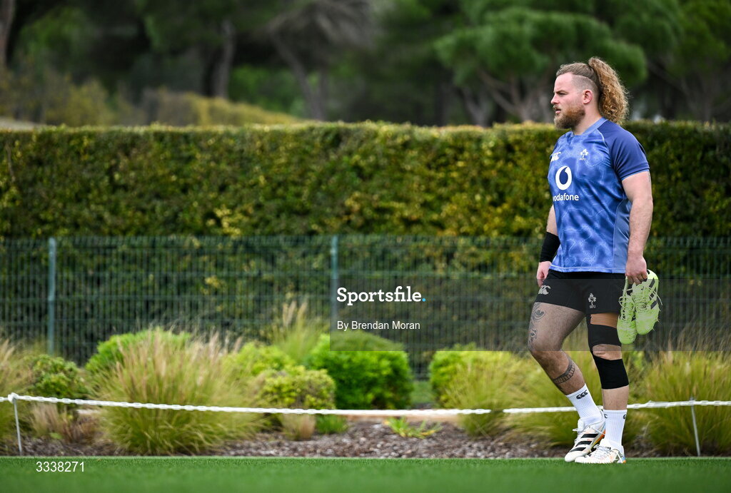1 February 2026; Finlay Bealham arrives for an Ireland Rugby squad training session at The Campus in Quinta do Lago, Portugal. Photo by Brendan Moran/Sportsfile