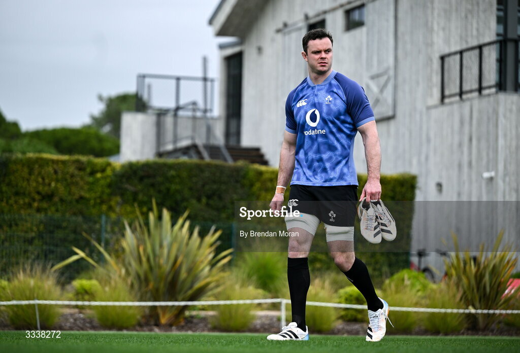 1 February 2026; James Ryan arrives for an Ireland Rugby squad training session at The Campus in Quinta do Lago, Portugal. Photo by Brendan Moran/Sportsfile