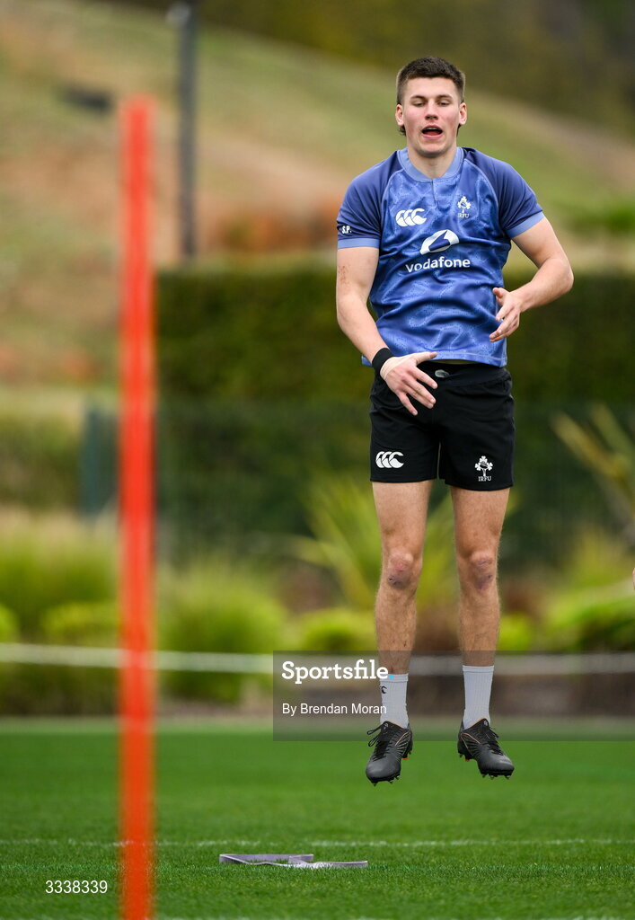 1 February 2026; Sam Prendergast during an Ireland Rugby squad training session at The Campus in Quinta do Lago, Portugal. Photo by Brendan Moran/Sportsfile