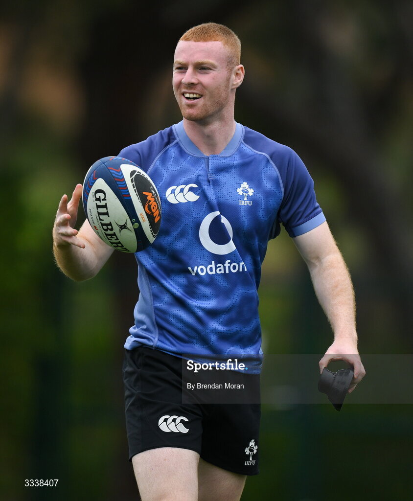 1 February 2026; Nathan Doak during an Ireland Rugby squad training session at The Campus in Quinta do Lago, Portugal. Photo by Brendan Moran/Sportsfile