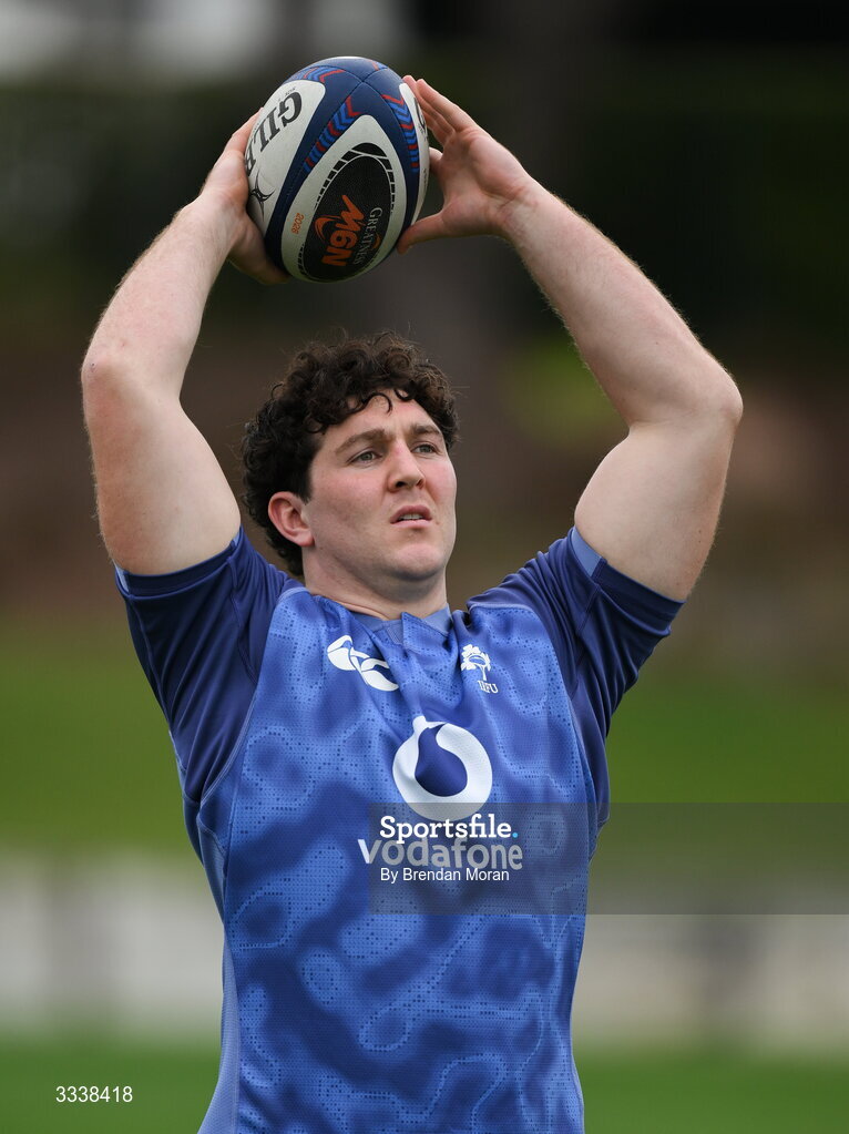 1 February 2026; Tom Stewart during an Ireland Rugby squad training session at The Campus in Quinta do Lago, Portugal. Photo by Brendan Moran/Sportsfile