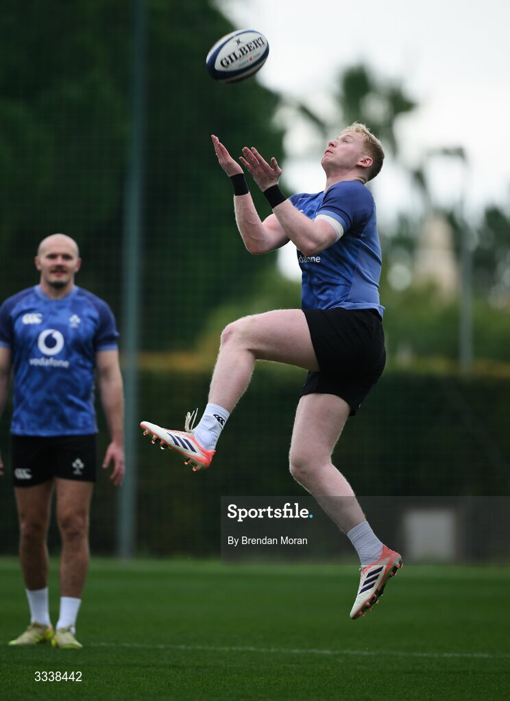 1 February 2026; Jamie Osborne during an Ireland Rugby squad training session at The Campus in Quinta do Lago, Portugal. Photo by Brendan Moran/Sportsfile