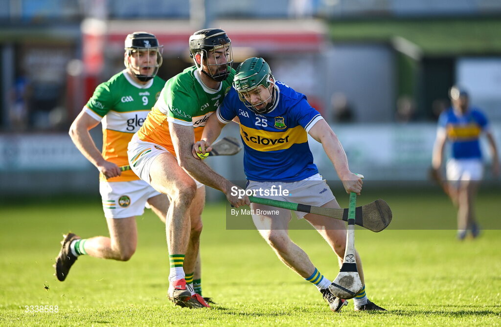 1 February 2026; Darragh Stakelum of Tipperary in action against Ben Conneely of Offaly during the Allianz Hurling League Division 1A match between Offaly and Tipperary at Glenisk O'Connor Park in Tullamore, Offaly. Photo by Matt Browne/Sportsfile