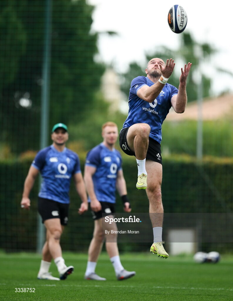 1 February 2026; Jacob Stockdale during an Ireland Rugby squad training session at The Campus in Quinta do Lago, Portugal. Photo by Brendan Moran/Sportsfile