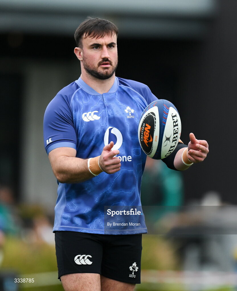 1 February 2026; Rónan Kelleher during an Ireland Rugby squad training session at The Campus in Quinta do Lago, Portugal. Photo by Brendan Moran/Sportsfile