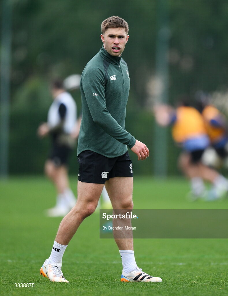1 February 2026; Jack Crowley during an Ireland Rugby squad training session at The Campus in Quinta do Lago, Portugal. Photo by Brendan Moran/Sportsfile