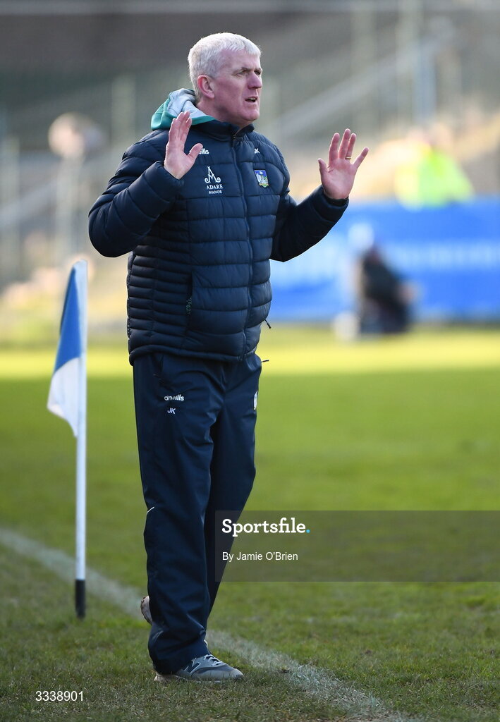 1 February 2026; Limerick manager John Kiely during the Allianz Hurling League Division 1A match between Waterford and Limerick at Azzurri Walsh Park in Waterford. Photo by Jamie O'Brien/Sportsfile