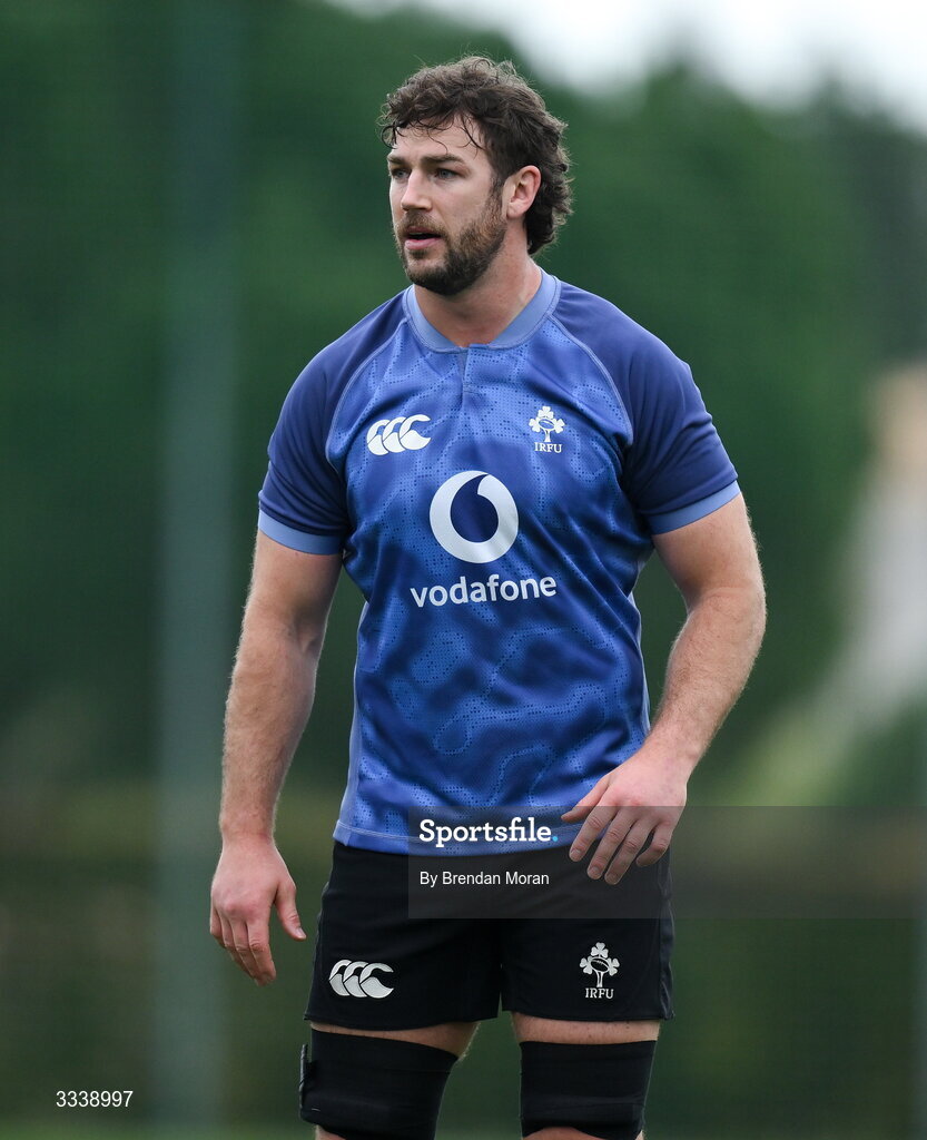 1 February 2026; Caelan Doris during an Ireland Rugby squad training session at The Campus in Quinta do Lago, Portugal. Photo by Brendan Moran/Sportsfile
