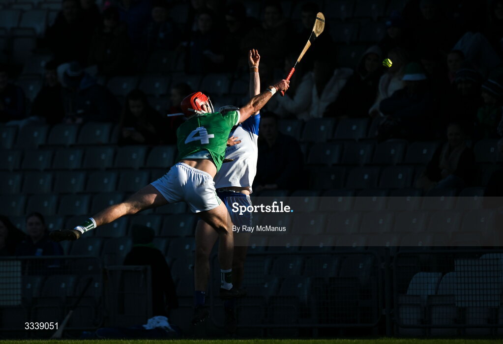 1 February 2026; Brian Lynch of Waterford is tackled by Barry Nash of Limerick during the Allianz Hurling League Division 1A match between Waterford and Limerick at Azzurri Walsh Park in Waterford. Photo by Ray McManus/Sportsfile