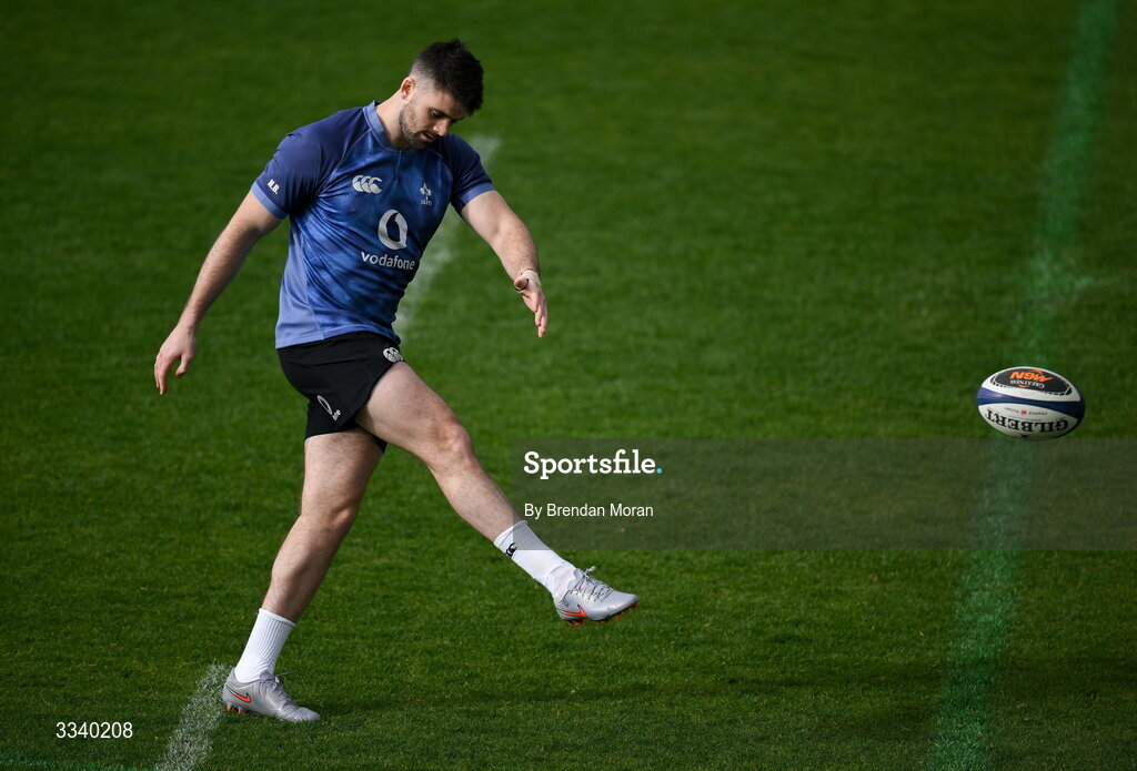 2 February 2026; Harry Byrne during an Ireland Rugby squad training session at The Campus in Quinta do Lago, Portugal. Photo by Brendan Moran/Sportsfile
