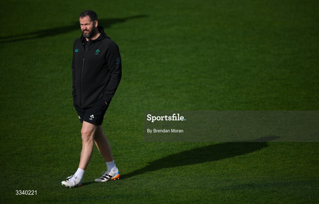 2 February 2026; Head coach Andy Farrell during an Ireland Rugby squad training session at The Campus in Quinta do Lago, Portugal. Photo by Brendan Moran/Sportsfile