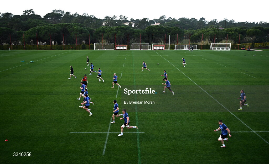 2 February 2026; Players go through a drill during an Ireland Rugby squad training session at The Campus in Quinta do Lago, Portugal. Photo by Brendan Moran/Sportsfile