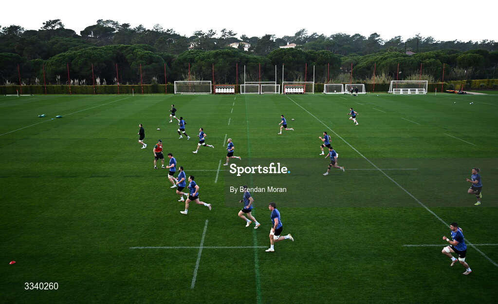 2 February 2026; Players go through a drill during an Ireland Rugby squad training session at The Campus in Quinta do Lago, Portugal. Photo by Brendan Moran/Sportsfile