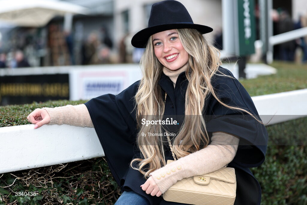 2 February 2026;Racegower Tilly Dalton from Liverpool Knowsley Village during day two of the Dublin Racing Festival at Leopardstown Racecourse in Dublin. Photo by Thomas Doolin/Sportsfile
