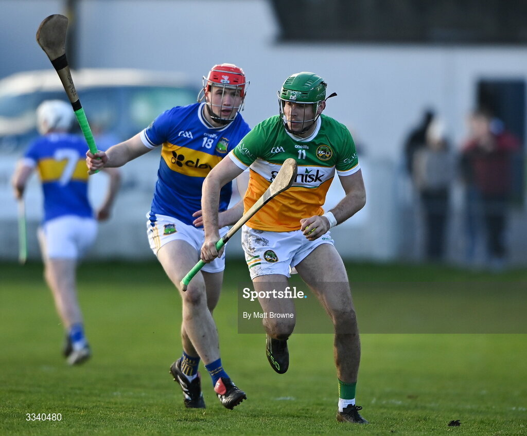 1 February 2026; Brian Duignan of Offaly in action against Cathal Emglish of Tipperary during the Allianz Hurling League Division 1A match between Offaly and Tipperary at Glenisk O'Connor Park in Tullamore, Offaly. Photo by Matt Browne/Sportsfile