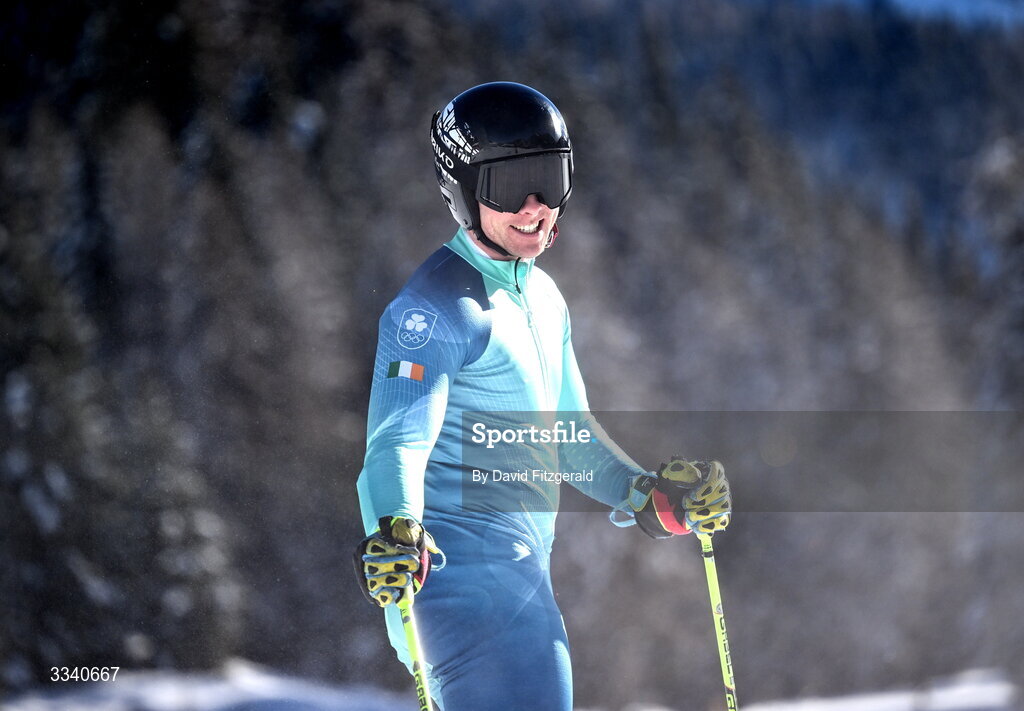 2 February 2026; Cormac Comerford of Team Ireland after a practice run ahead of the Milano Cortina 2026 Winter Olympics in Dobiacco, Italy. Photo by David Fitzgerald/Sportsfile