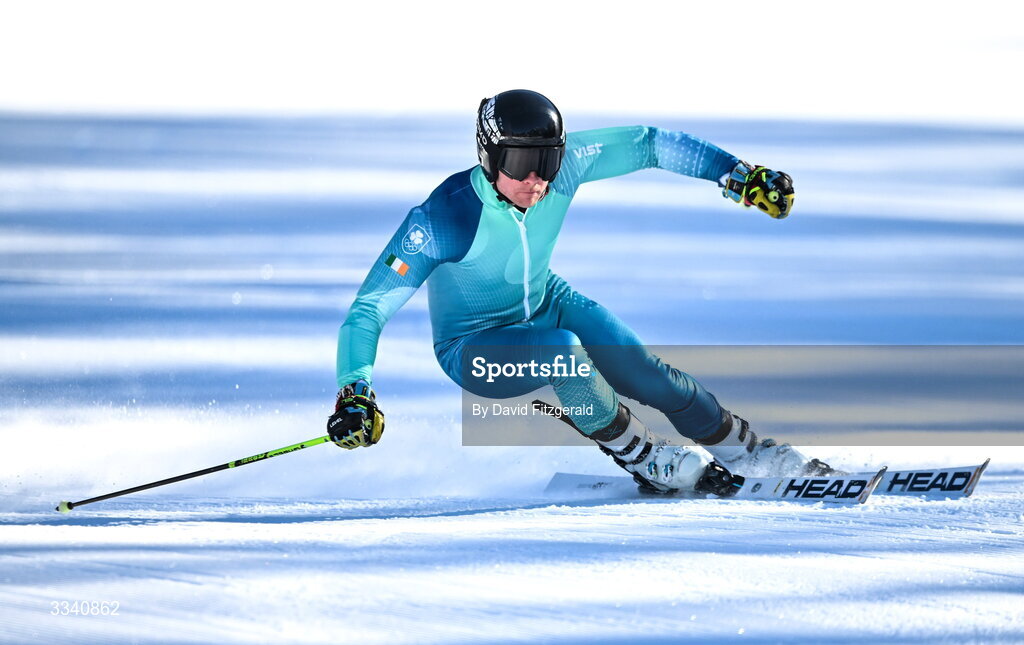2 February 2026; Cormac Comerford of Team Ireland during a practice run ahead of the Milano Cortina 2026 Winter Olympics in Dobiacco, Italy. Photo by David Fitzgerald/Sportsfile