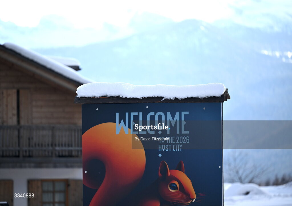 2 February 2026; Signage is seen ahead of the Milano Cortina 2026 Winter Olympics in Cortina, Italy. Photo by David Fitzgerald/Sportsfile