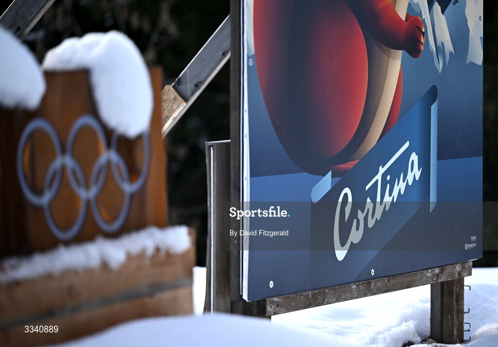 2 February 2026; Signage is seen ahead of the Milano Cortina 2026 Winter Olympics in Cortina, Italy. Photo by David Fitzgerald/Sportsfile