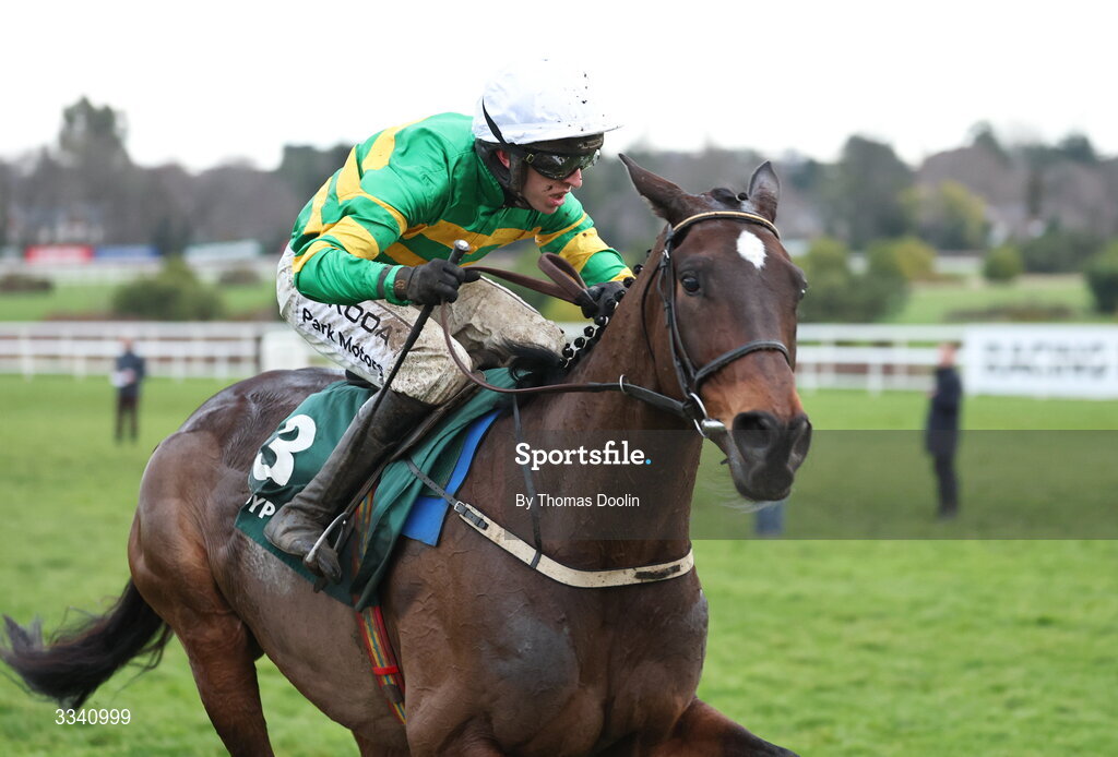 2 February 2026; Fact To File, with Mark Walsh up, on their way to winning the Paddy Power Irish Gold Cup during day two of the Dublin Racing Festival at Leopardstown Racecourse in Dublin. Photo by Thomas Doolin/Sportsfile